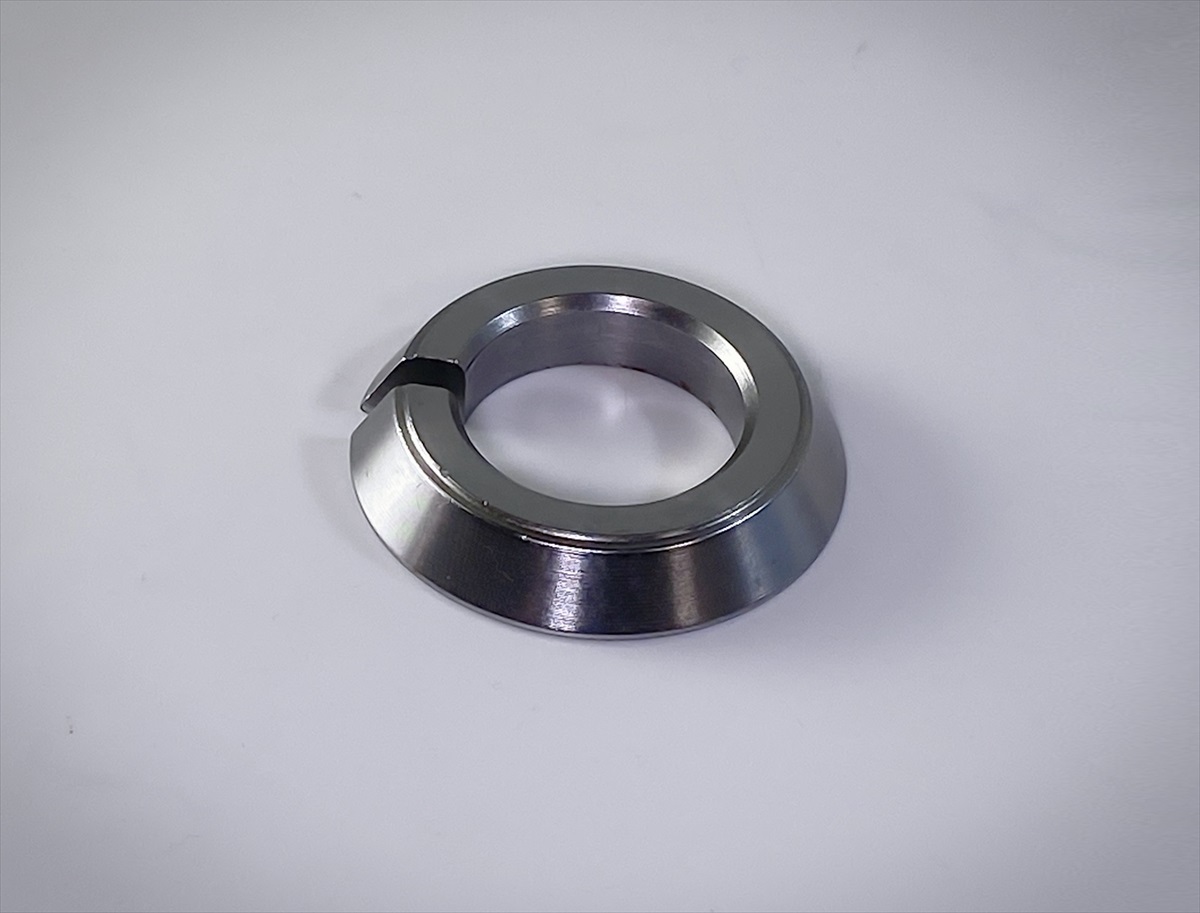 FAM9270A 1990年代に純正品を造っていたメーカーにて製造・切削を行った「純正品質」のドライビングフランジ・テーパースペーサーです。 ドライブシャフトとフランジ〜ハブベアリングのマッチングと耐久寿命のためのニゲ加工が丁寧に施されています。このニゲのないアフター品をつかうと装着時は大丈夫でも1000キロ走ったくらいからガタが出てくる場合がありますのでとても重要なパーツです。